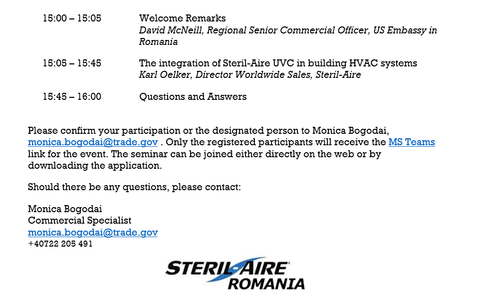 U.S. Embassy Online Presentation - Steril-Aire for Safer Heating, Ventilation, and Air Conditioning Systems