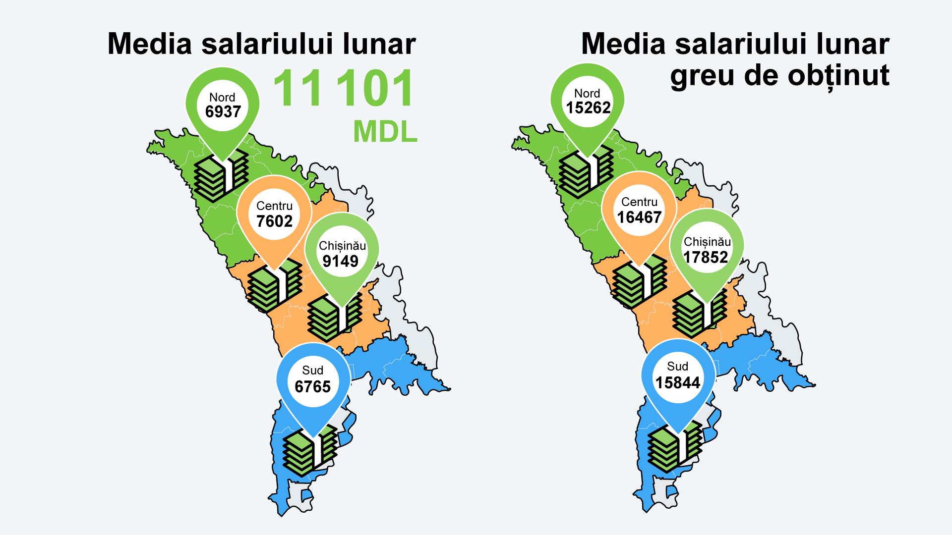 Aspectele financiare sunt o preocupare importantă pentru respondenți. Astfel, potrivit studiului, salariului lunar greu de obținut constituie 17 852 lei în medie pentru Chișinău. La polul opus se poziționează nordul țării, cu 15 262 lei. Respondenții consideră că salariul potrivit, este, în medie, de 12 506 lei (+2 875 lei, comparativ cu 2020). Totodată, media salariului net obținut de respondenți reprezintă 11 101 MDL pe lună.
