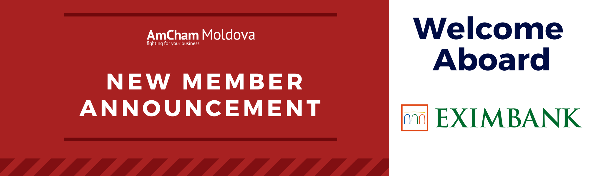 AmCham Moldova welcomes aboard a new member: Eximbank Moldova B.C. “Eximbank” S.A. represents a universal commercial bank offering quality services.