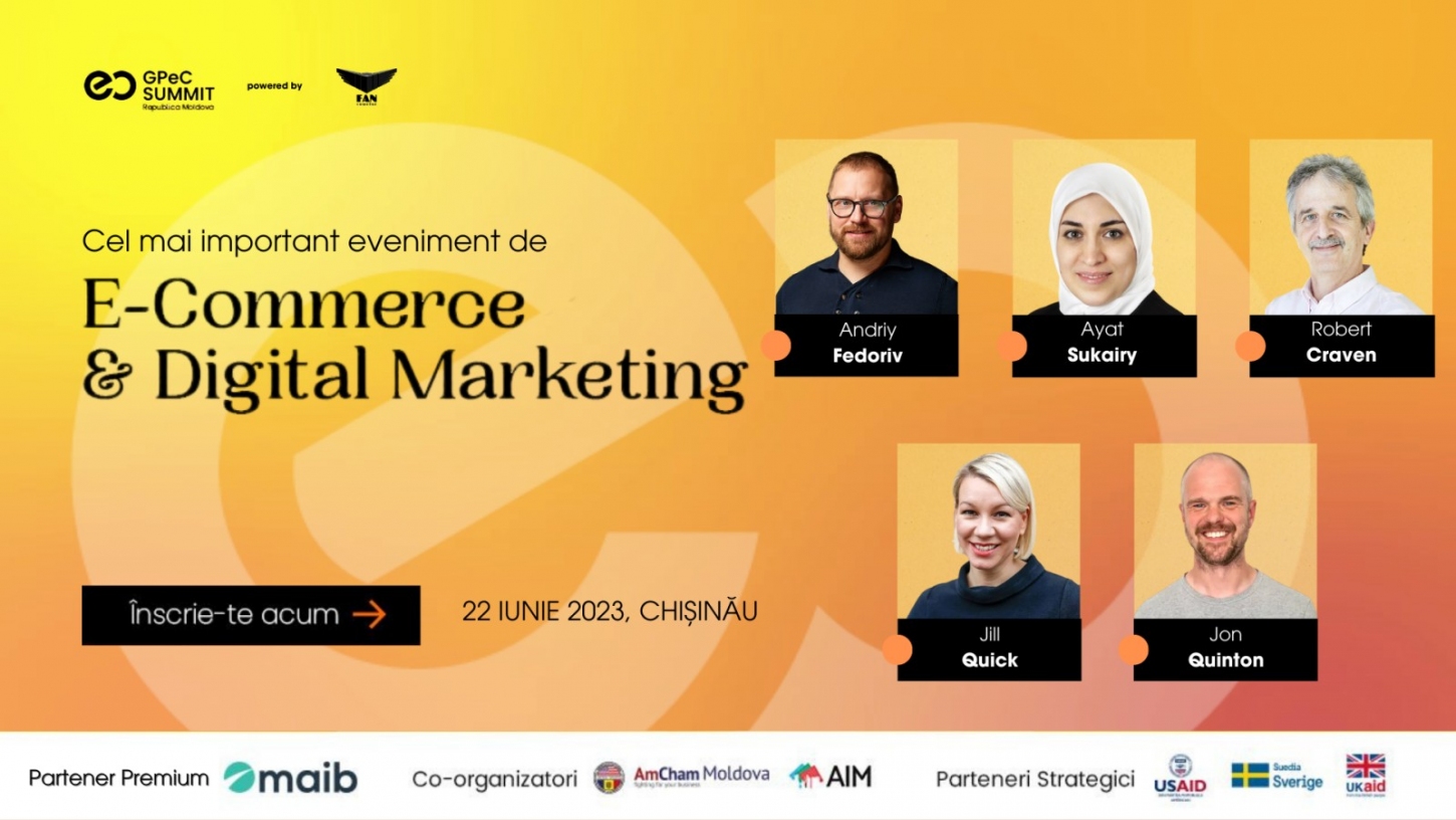 Cinci speakeri internaționali legendari au vorbit, pentru prima oară, la GPeC Moldova: Ayat Shukairy, Jill Quick, Andriy Fedoriv, Jon Quinton și Robert Craven