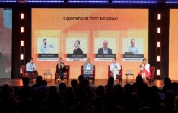 Antreprenorii din Republica Moldova prezenți pe scenă în cadrul panelului Experiences from Moldova au povestit succesele lor, dar și pașii pe care i-au întreprins până a ajunge la nivelul la care sunt acum, precum și oportunitățile de dezvoltare pe care le au la îndemână pe piață locală: Alexei Panin (Digital Business Director MAIB), Julia Allert, Victor Nistorică (CEO Brutăria Bardar), Vlad Vedrașco (Digital Advertising Expert) au împărtășit provocările, dar și oportunitățile pe care le-au valorificat în dezvoltarea business-urilor pe care le conduc.