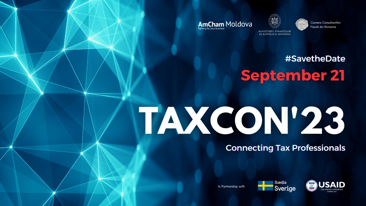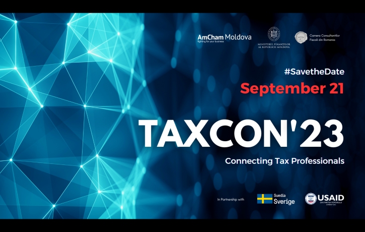 Camera de Comerț Americană din Moldova​ (AmCham Moldova), în parteneriat cu Ministerul Finanțelor al Republicii Moldova și Camera Consultanților Fiscali din România, va desfășura pe 21 septembrie la Chișinău cea de-a patra ediție a conferinței fiscale „TAXCON'23”.