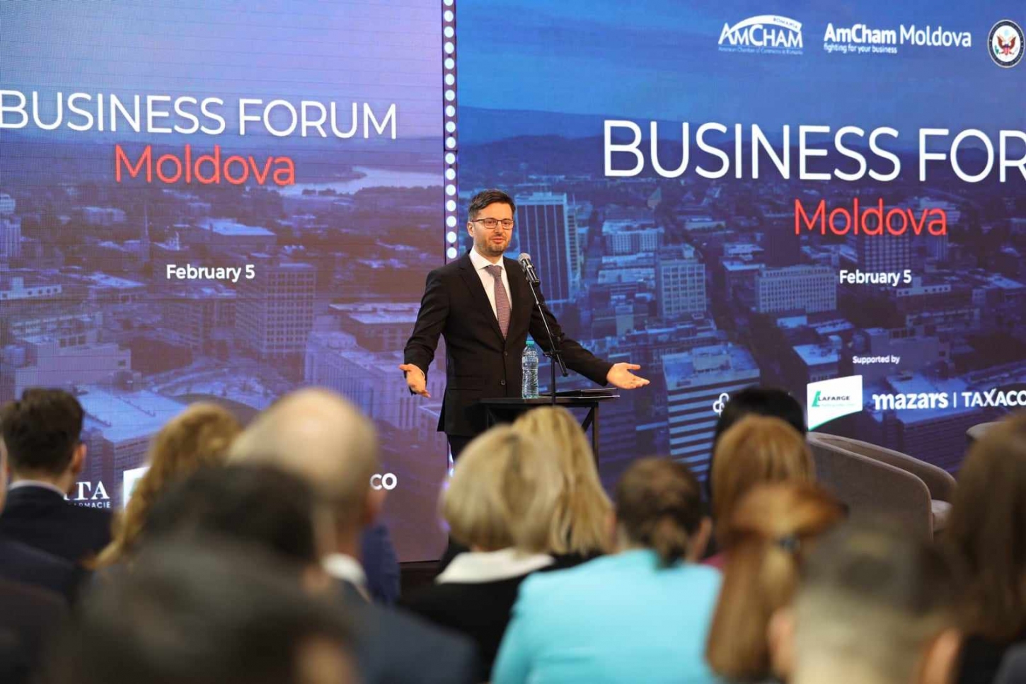 La Forumul de Afaceri din 5 februarie a participat Dorin RECEAN, prim-ministrul Republicii Moldova, care a prezentat profilul investițional al țării. Premierul a afirmat în cadrul forumului că „Republica Moldova are talent, are inovație, știe să învețe și să preia foarte rapid know-how-ul de la companiile internaționale” și astăzi ea „are nevoie ca aceste oportunități să fie exploatate în sensul bun al cuvântului de către capitalul, inovația și inițiativa din exterior”. Dorin Recean a subliniat că Republica Moldova își concentrează capacitățile pentru a diminua procedurile administrative în ideea ca „debirocratizarea și digitalizarea să facă viața businessului mult mai ușoară”. În acest sens, prim-ministrul a menționat că „Republica Moldova are două platforme de dezvoltare a businessului: industrială, gen zona economică liberă, și IT-parcurile care și-au demonstrat eficiența prin faptul că atestă o creștere exponențială a producerii și exportului de afaceri”. Pe de altă parte, premierul a mai spus că între ceea ce Republica Moldova a întreprins în ultimii ani pentru a se apropia de comunitatea europeană în aspect economic a fost „să deschidem piața UE, piața CEFTA și alte piețe prin a oferi oportunități de investiții aici pentru exporturile în aceste piețe”.