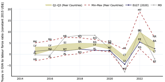 A quantitative assessment of the impact of already adopted fiscal, trade, and labor policies using a Vector Auto-Regression (VAR) model to simulate how policy changes influence Moldova’s business environment relative to peer countries (e.g., Albania, Montenegro, Czech Republic) helping benchmark Moldova's competitiveness in the region.