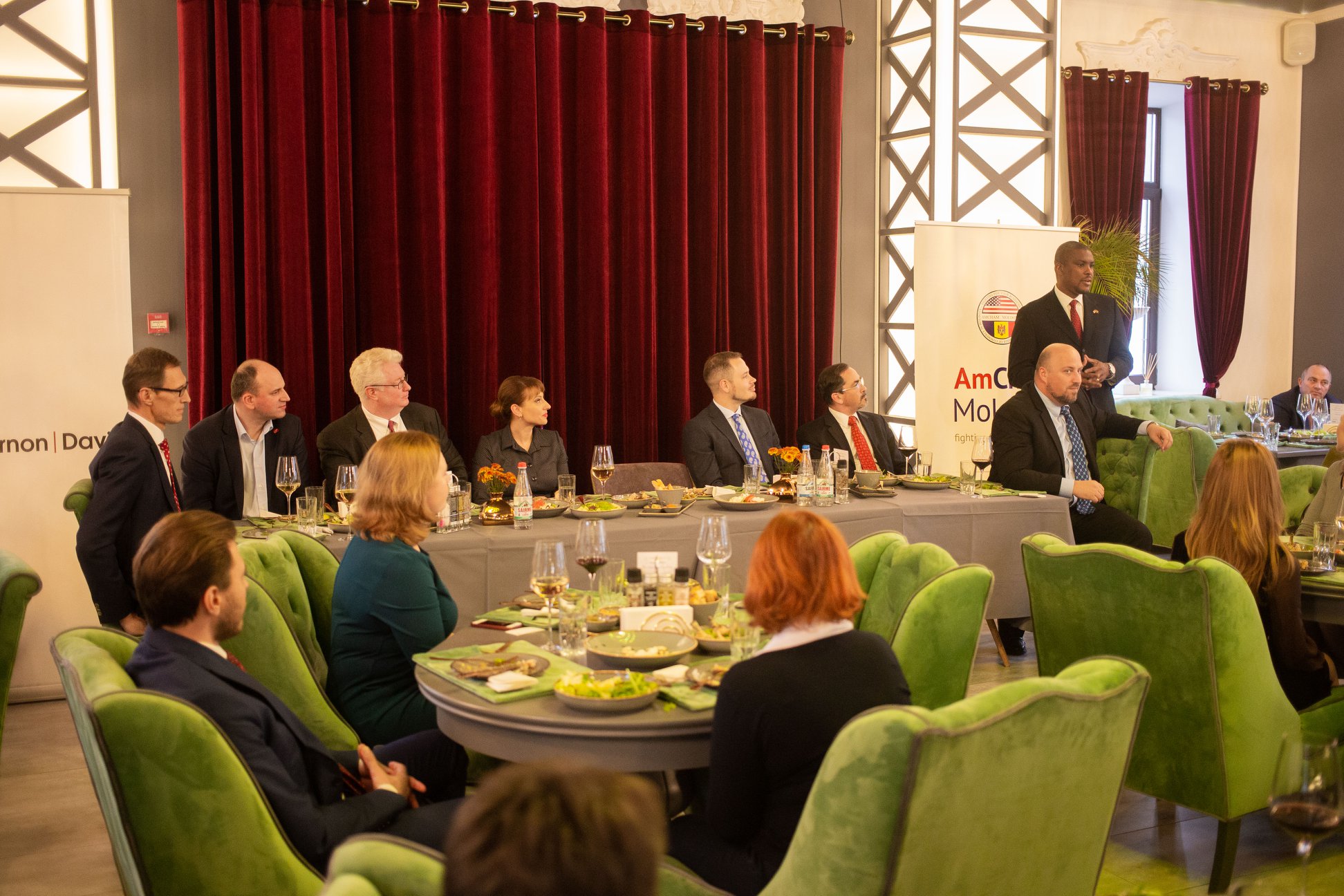 The Luncheon was opened by AmCham Chief Executive Mila Malairau, who warmly welcomed members and His Excellency to the luncheon; followed by a speech by AmCham President Veronica Malcoci who highlighted the importance of gratitude. H.E. Mr. Dereck J. Hogan was then introduced to the AmCham Members present, who gave a speech presenting his credentials as Ambassador and the goals of the current US approach to Moldova; as well as outlining his family’s Thanksgiving traditions.
