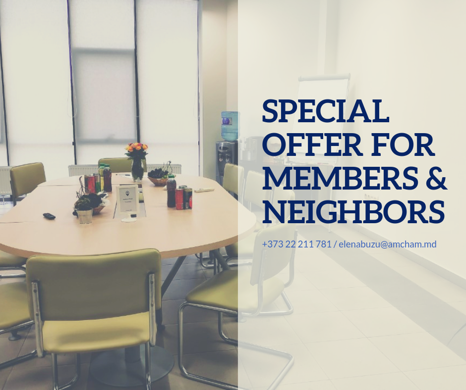 As you already know, starting with this January, AmCham has a new conference room, in a walking distance from the city center, which is available to rent at a special price.